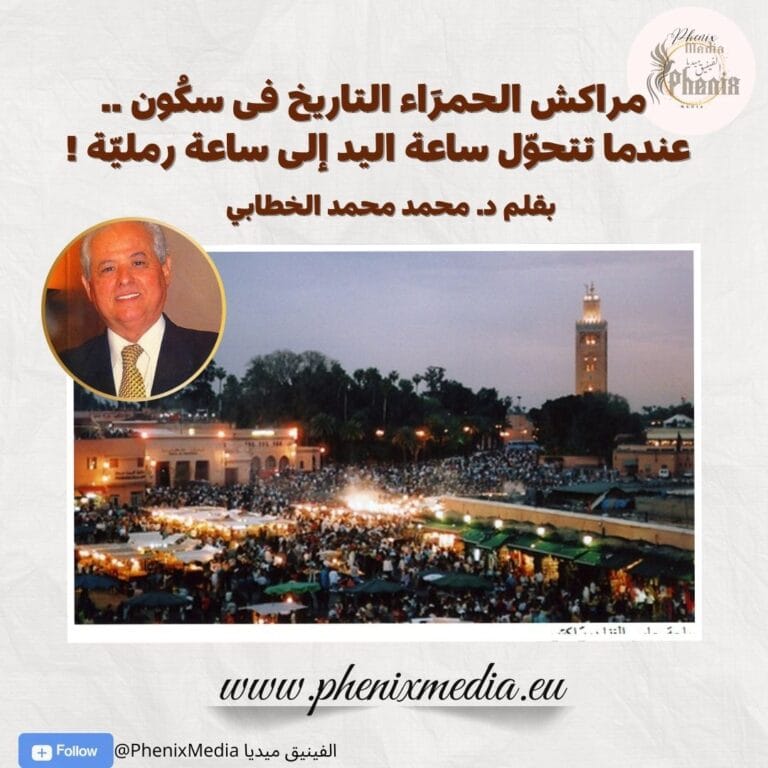 مراكش الحمرَاء التاريخ فى سكُون .. عندما تتحوّل ساعة اليد إلى ساعة رمليّة ! بقلم د. محمد محمد الخطابي مارس 7, 2025 إقرأ المزيد...